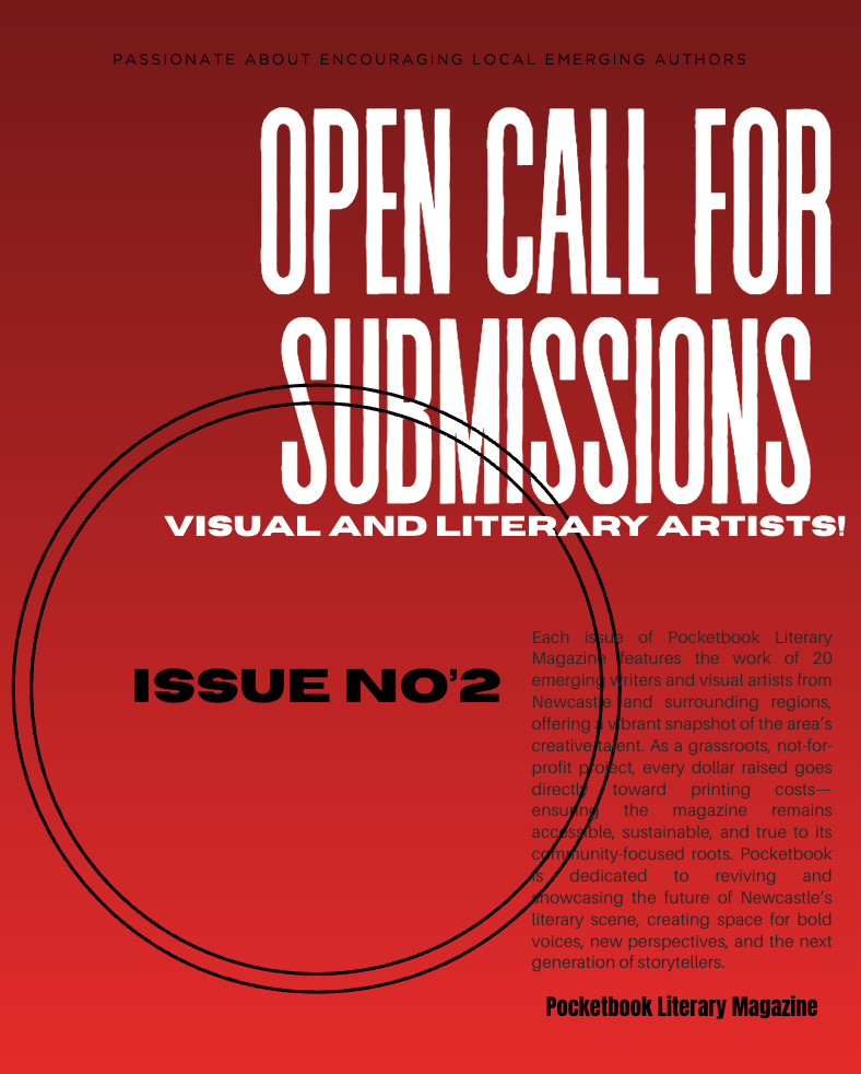 Pocketbook is dedicated to reviving and showcasing the future of Newcastle’s literary talent, creating space for bold voices, new perspectives, and the next generation of storytellers.